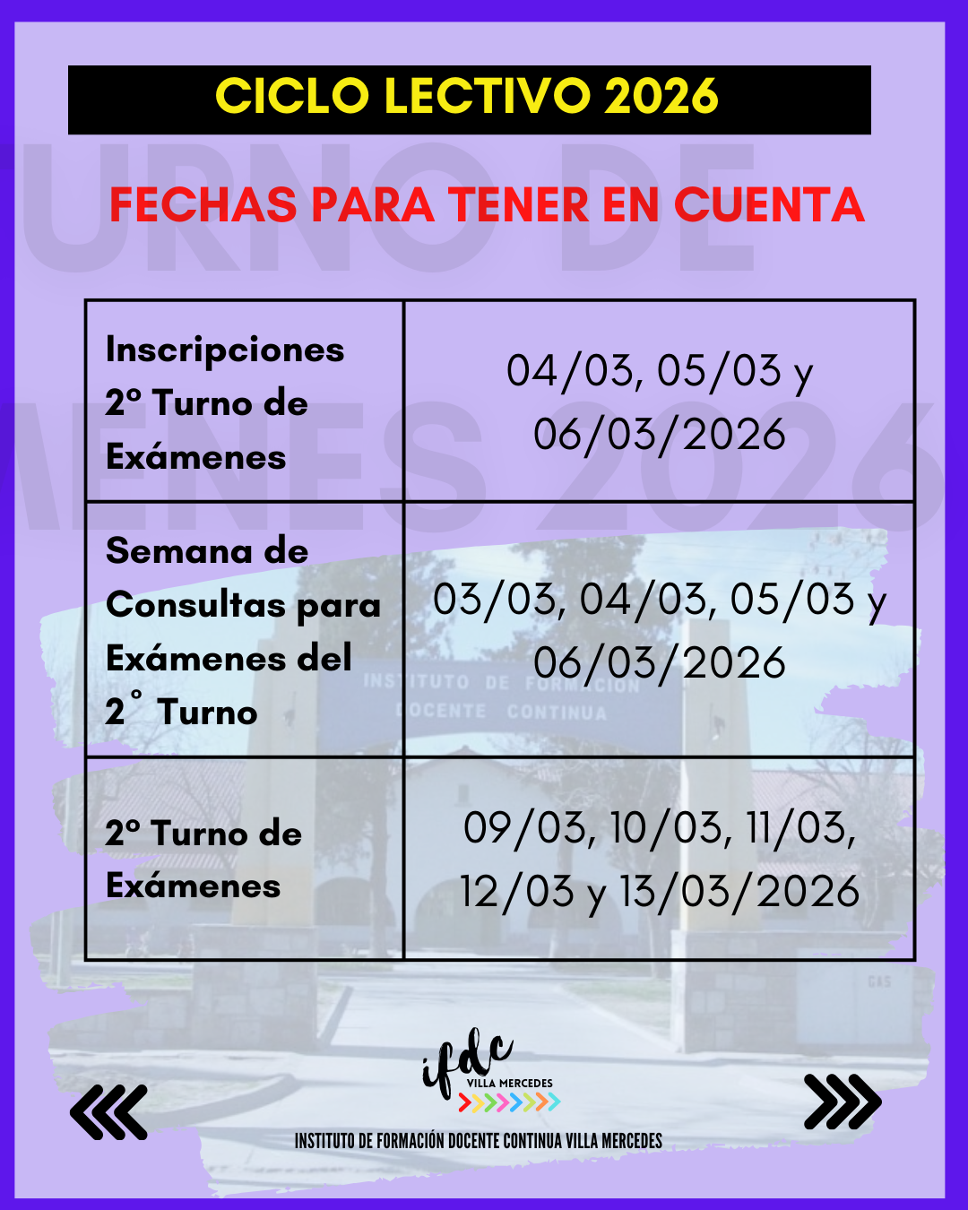 | 2° Turno de Exámenes | 09/03, 10/03, 11/03, 12/03 y 13/03/2026 |