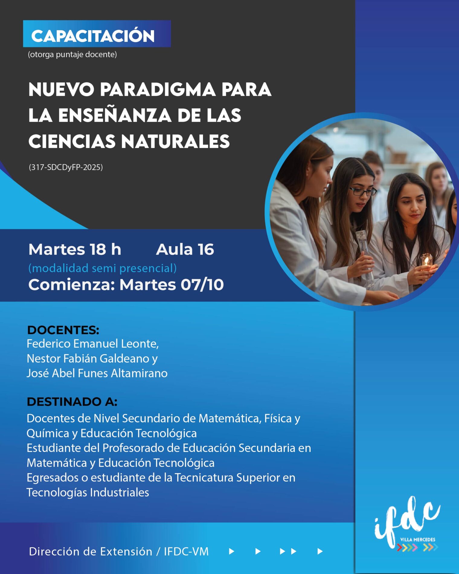 - Docentes de Nivel Secundario de Matemática, Física y Química y Educación Tecnológica.