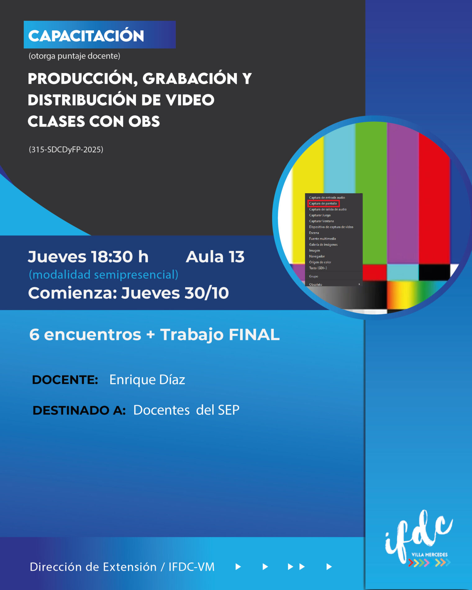 Síntesis: La pandemia COVID forzó la práctica docente a un Modelo Remoto de Emergencia del que no todos y todas participamos de forma equitativa. El video como recurso de registro, grabación y distribución fue clave para el funcionamiento del sistema educativo. Entre las múltiples ofertas a las plataformas de pago surge Open Broadcast Software (de aquí en más OBS) como alternativa para la producción, grabación y distribución de clases, materiales didácticos y mucho más.